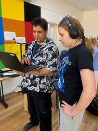 The songwriting process included instrumental coaching as well as the use of student-focused educational AI songwriting tools, along with coaching by Frau Froidevaux.