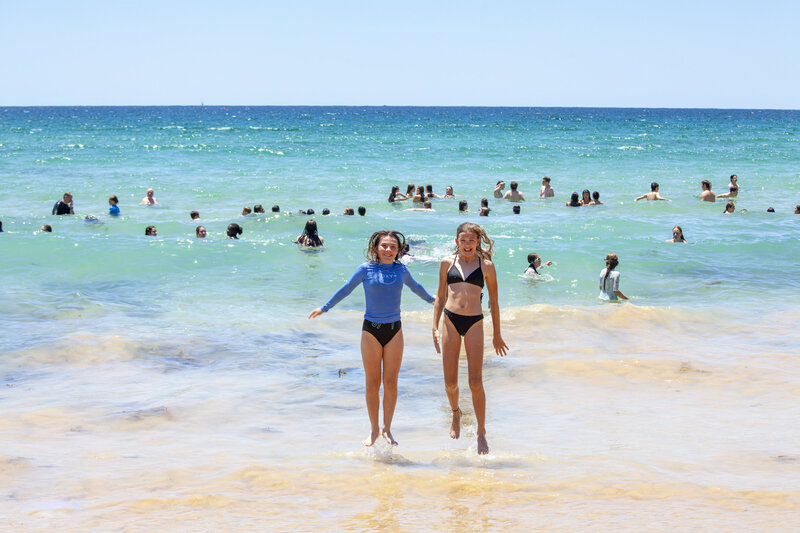 Last Tuesday, Years 5 to 10 found their way to Manly for our annual Beach Day. We were lucky with the weather. In bright sunshine, the students enjoyed the waves between the flags. Beach volleyball and building sandcastles were also on the agenda. Kapil provided us all with delicious lunch boxes. Of course, a trip to the Corso was also a must.