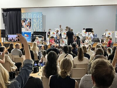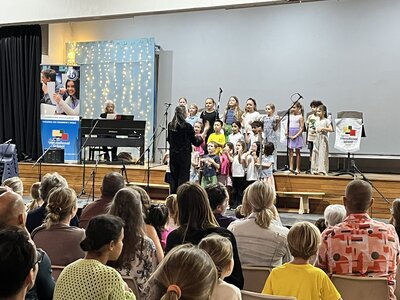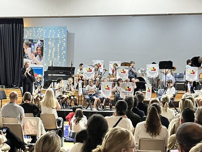 Unsere Geigenklasse der 2. Klasse, die Streichensembles, Konzertbands und Chöre präsentierten eine Auswahl ihrer Stücke, die sie während des Jahres gelernt hatten, in einem Konzert mit über 100 SchülerInnen und einem bis auf den letzten Platz gefüllten Publikum aus Eltern und Familien.