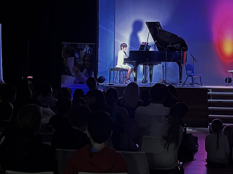Ellie (Klasse 4) eröffnete den Abend wunderschön auf der Violine und setzte damit den Ton für eine Nacht voller großartiger Musik. Es folgten inspirierende Gesangs- und Instrumentalbeiträge, die alle das Engagement und die Leidenschaft unserer SchülerInnen eindrucksvoll zeigten. Das Programm bot eine große musikalische Vielfalt – von Klassik bis Pop. Harrison, Odette (Klasse 3) und Myka (Klasse 6) sorgten mit ihrer fantastischen Interpretation von “7 Nation Army” für eines der vielen Highlights des Abends und begeisterten das Publikum zum Mitklatschen