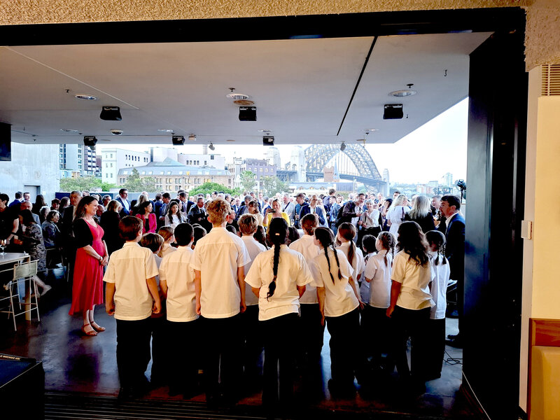 On 15th October, the Senior Choir was honoured to be invited to sing the German and Australian national anthems at the celebrations for German National Day, hosted by the Australian German Consulate. Twenty-two students were very excited to perform at this formal evening event, which was held on the rooftop of the Museum of Contemporary Art in the Sydney CBD.